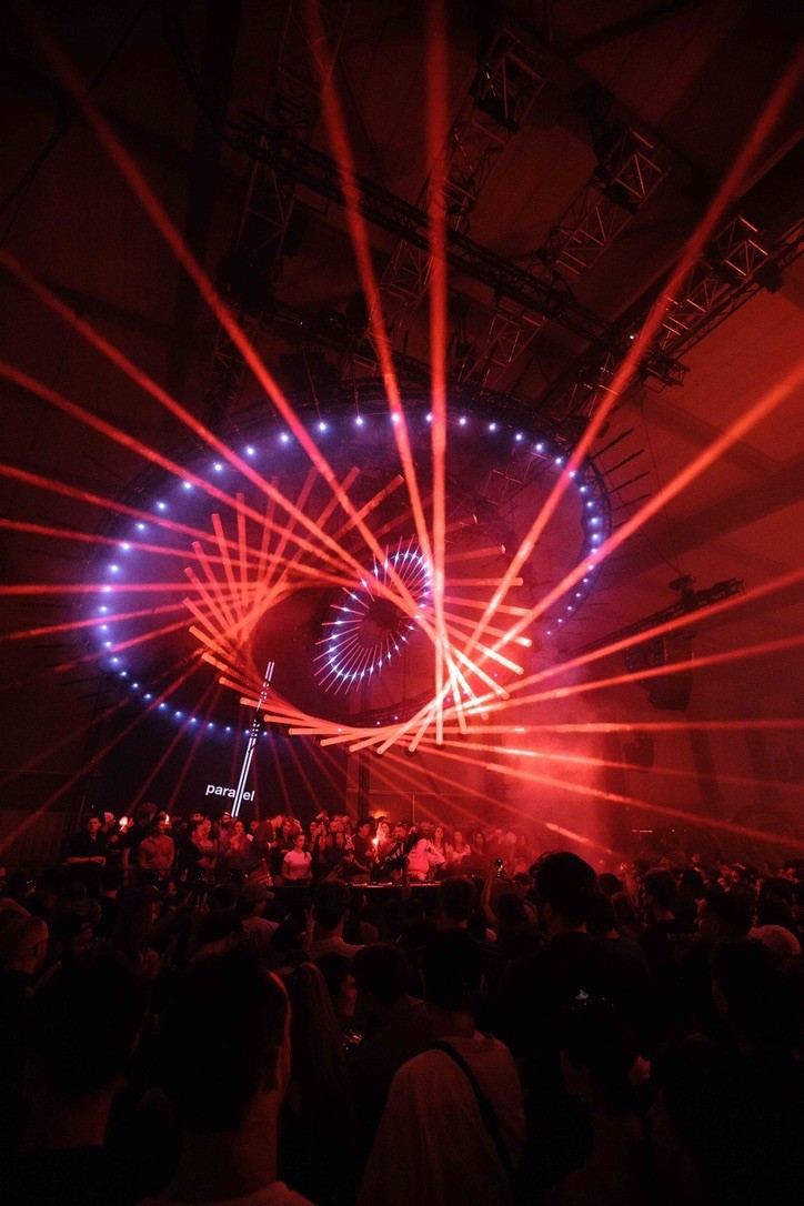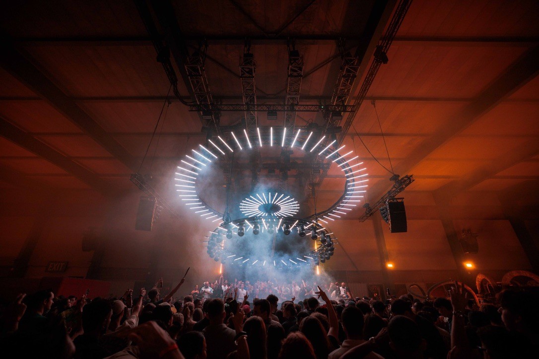 At the core of the experience hung three kinetic rings, each embedded with lighting tools that allowed for an endless sequence of visual states. Their movement and light programming echoed the mechanics of timekeeping — cyclical, precise, and ever in motion. As the night progressed, the visual language grew richer and more intense, building in energy like the winding of a finely crafted watch