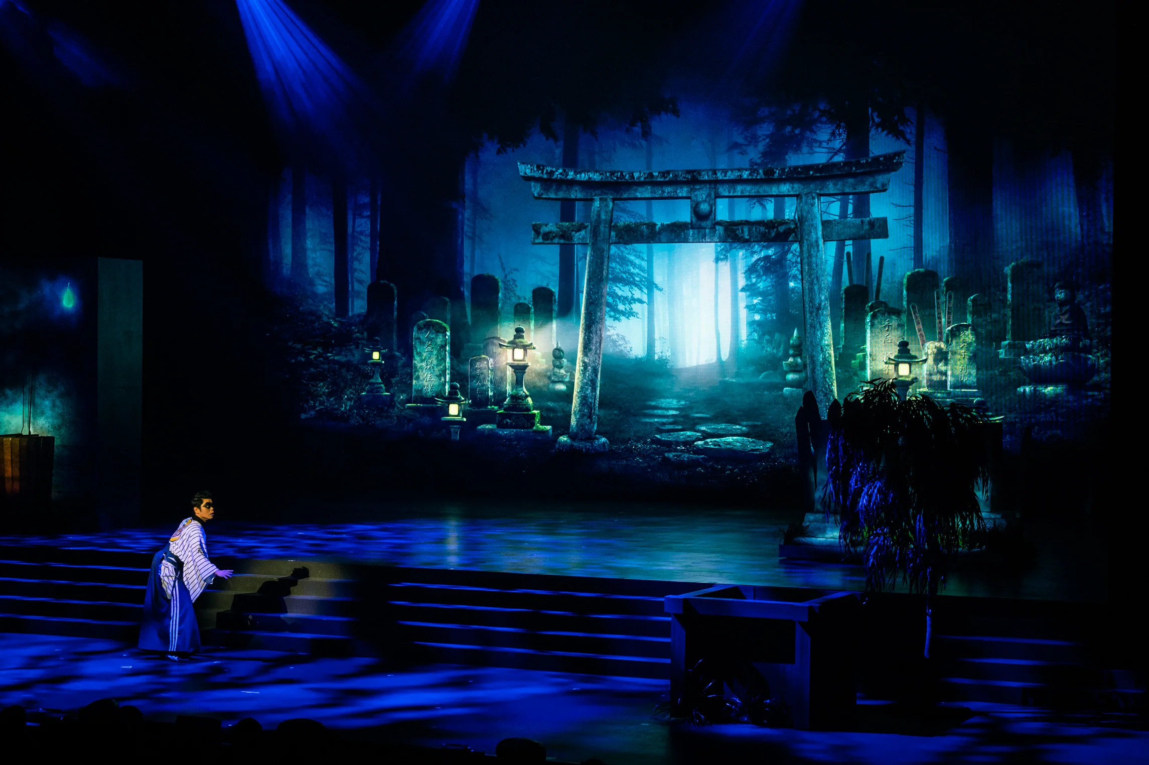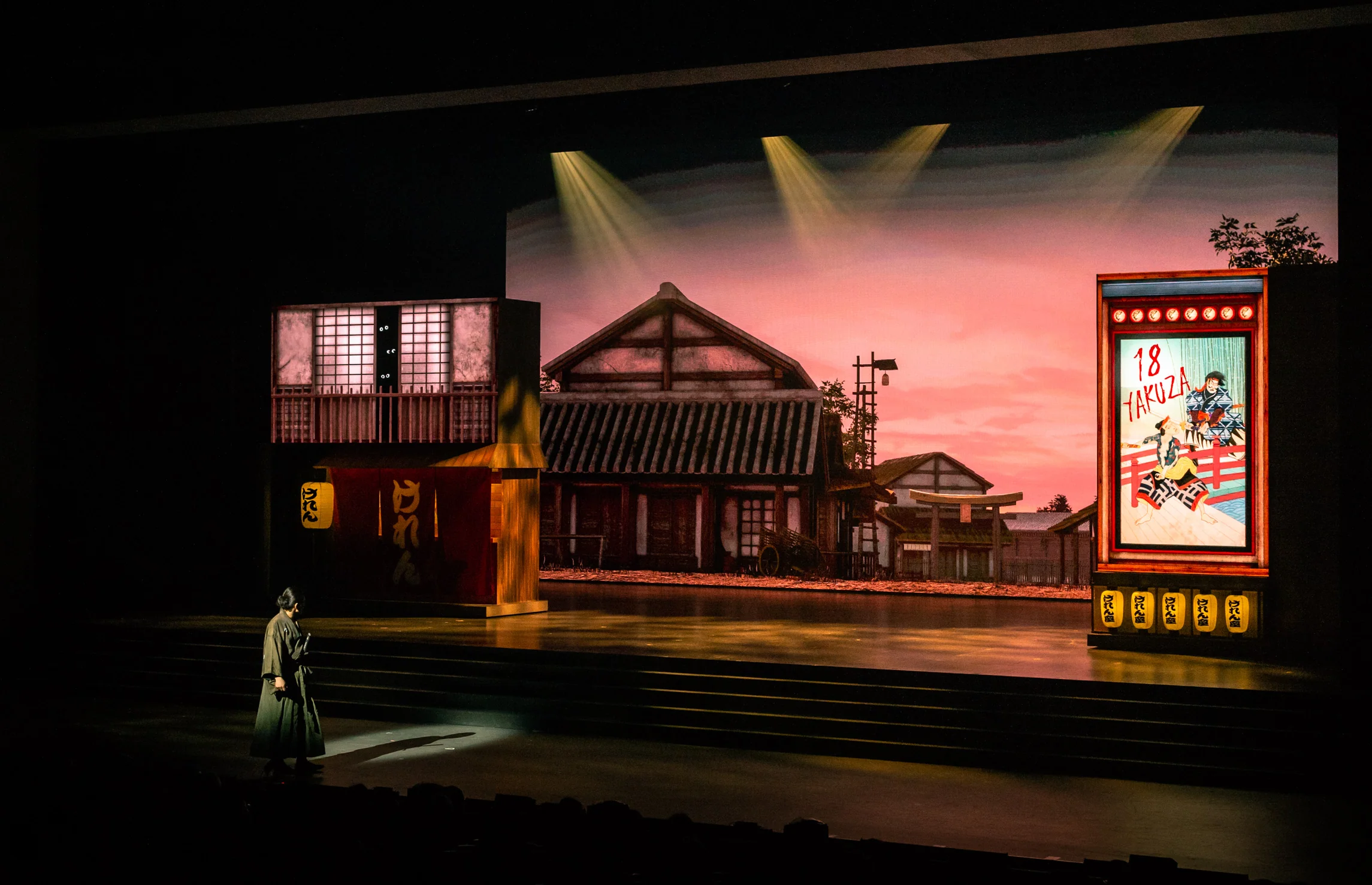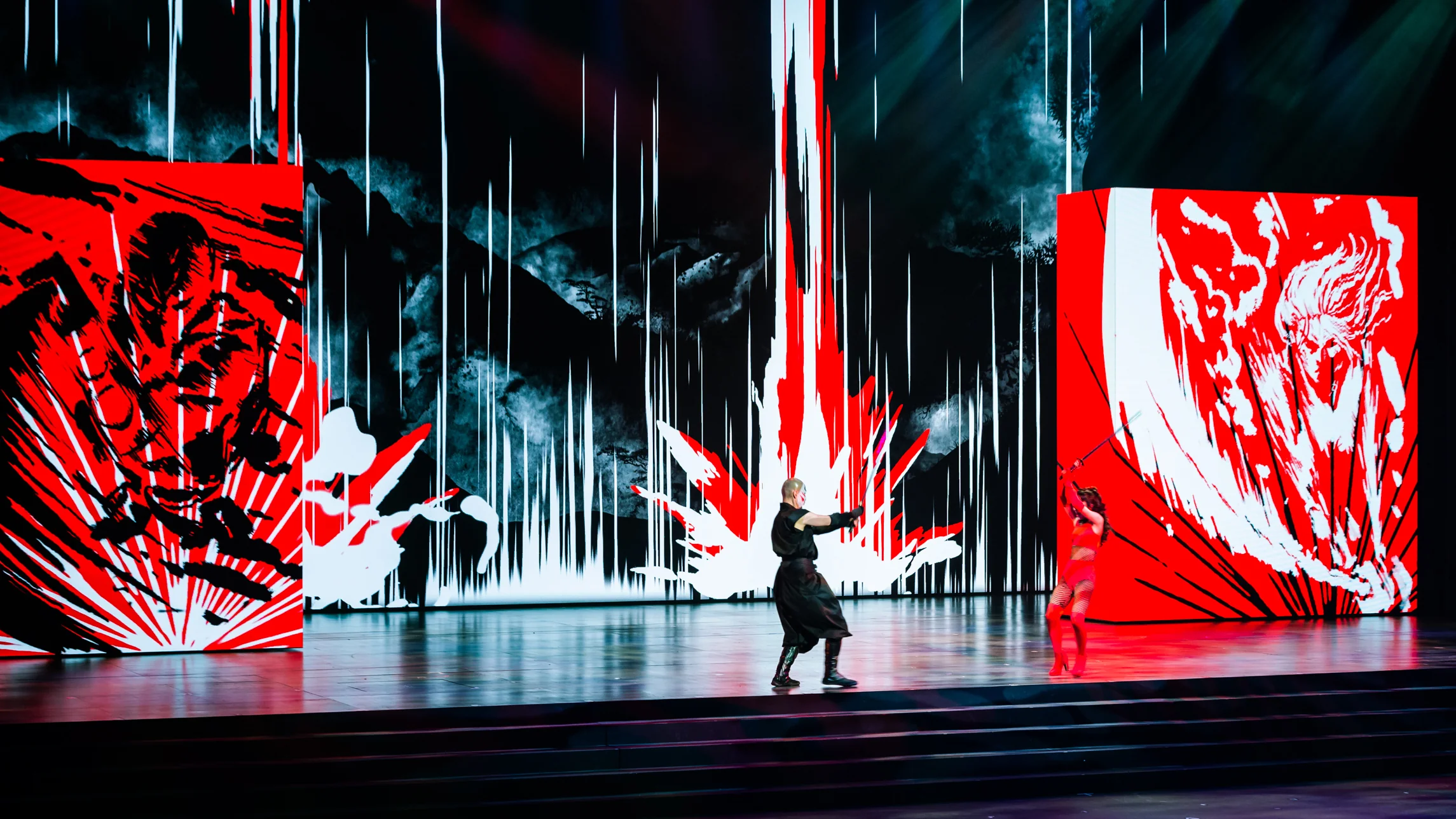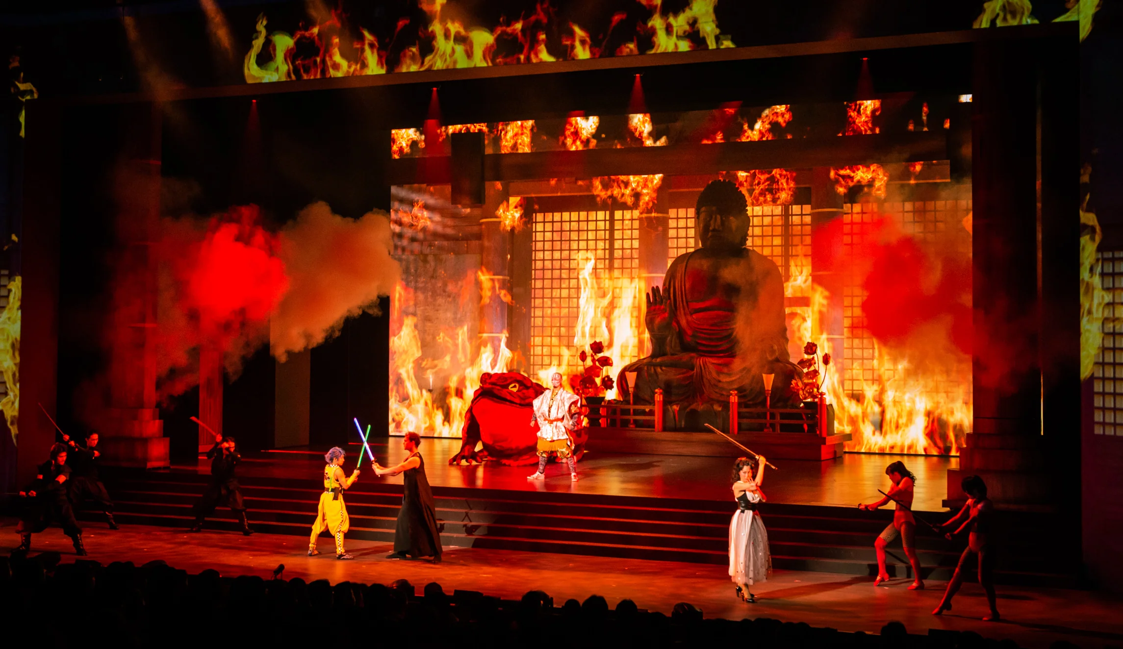 Inspired by the Kabuki term keren—referring to theatrical tricks, stunts, and illusions—the production reinterpreted these traditions through contemporary multimedia and stagecraft. Performers moved fluidly between live action and on-stage screens, with illusions passing seamlessly between physical performance and digital content, intentionally blurring where reality ended and technology began. Traditional and popular music, dance, humour, swordplay, and stylised combat collided with playful references to samurai, ninjas, yakuza, and manga culture. The result was a layered, cross-disciplinary work that carried the spirit of Kabuki into a modern theatrical form, designed to resonate with both Japanese and international audiences