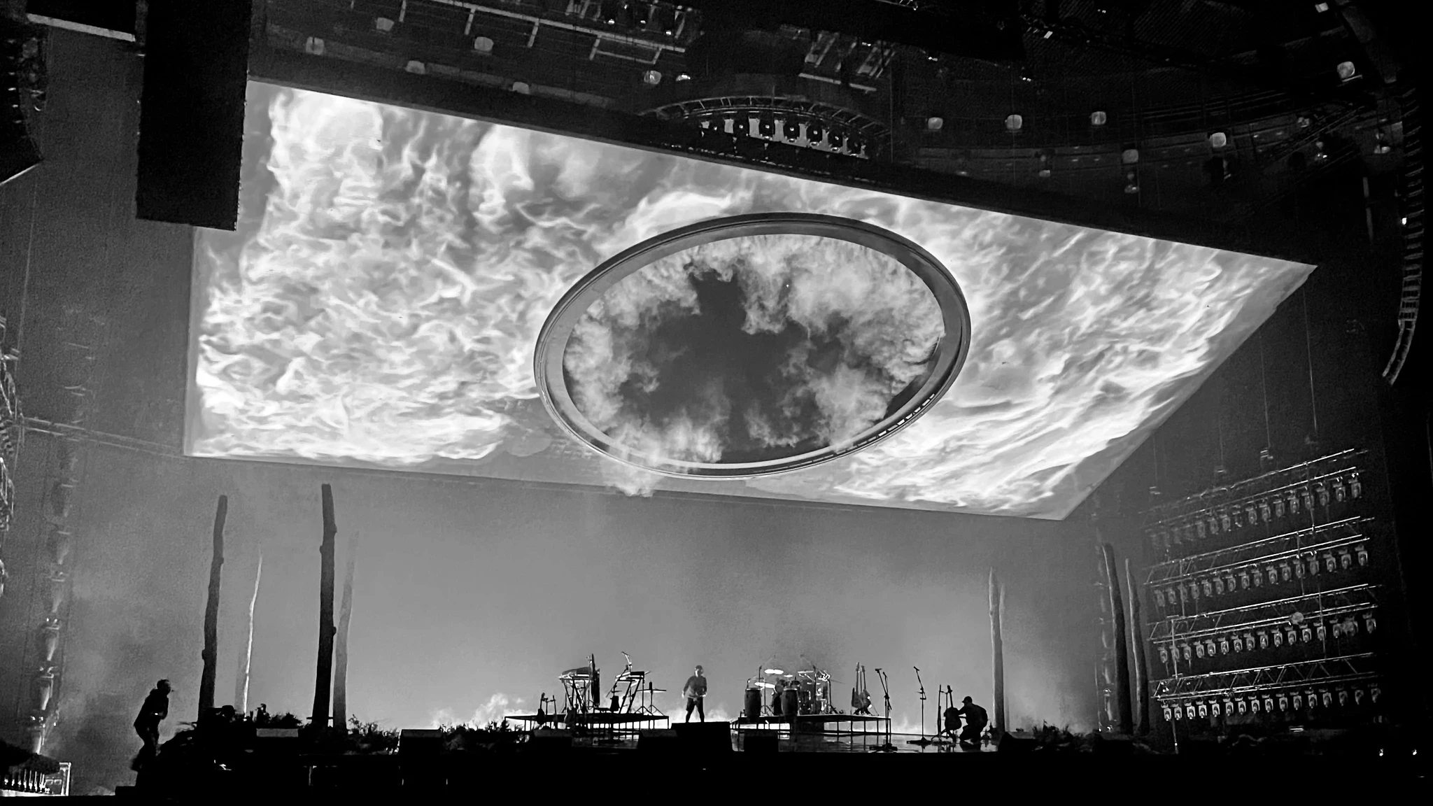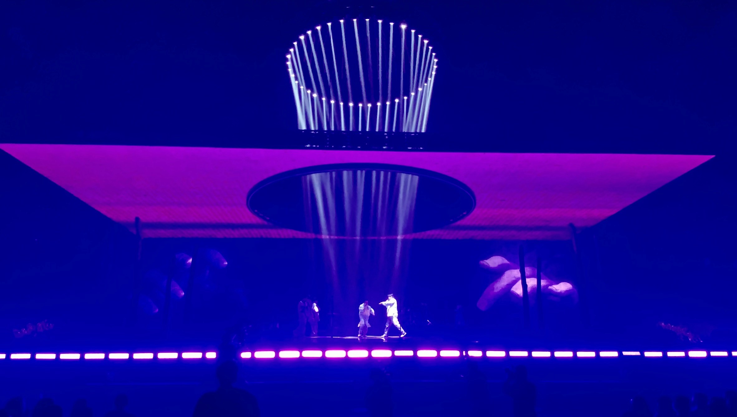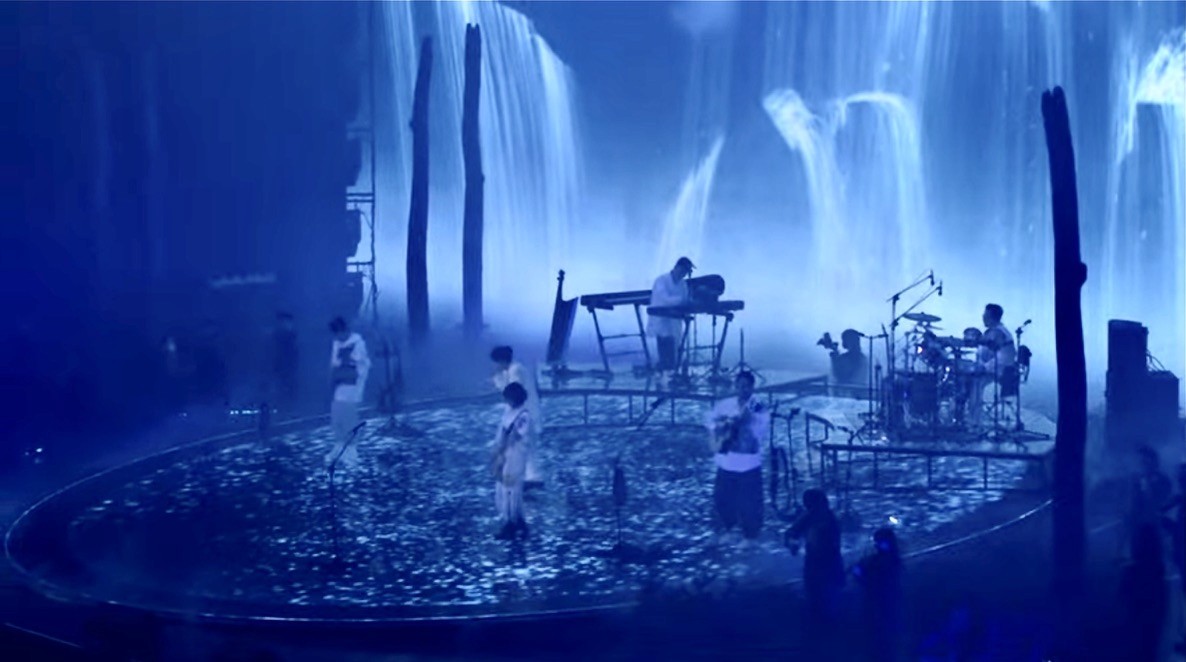 The performance unfolded as a continuous visual and emotional arc, moving from the muddy waters of the pool into a dark chapter of uncertainty, where a devil-like figure embodied control and loss. From there, the world slowly opened into misty forests, sunlit hills, erupting volcanoes, storms, and finally the universe itself—populated by surreal space animals. The show resolved in light and clarity, culminating in a symbolic reveal of freedom, rebirth, and the return of the name Sodagreen.