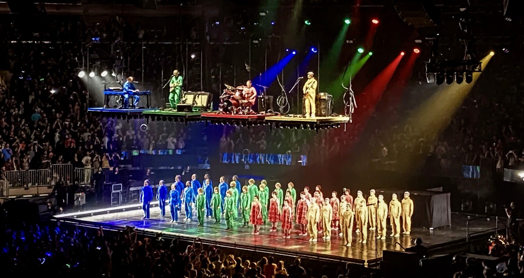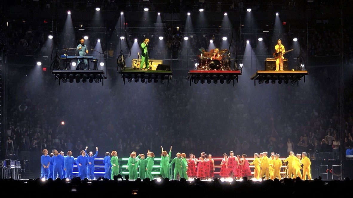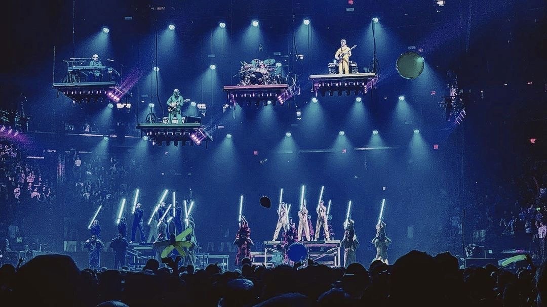 The show unfolded as a piece of live theatre as much as a concert, with moving scenic elements constantly reconfiguring the stage to create shifting performance spaces. The interplay between the real band, their clones, and the evolving architecture blurred perception and scale, turning the arena into a kinetic, playful, and surreal environment—perfectly timed to usher in the New Year.